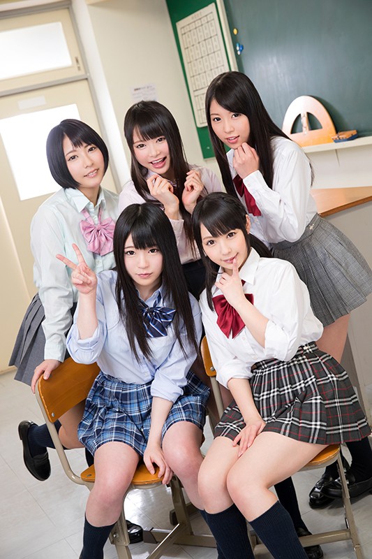 教室に入ってきた女子校生5人組が突然パンティを脱ぎだし僕の生チンポを即ハメ!